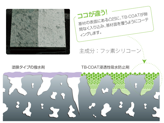 TBーCOATは、その墓石に浸透してコートするため、墓石を強力に保護をします。